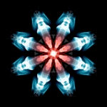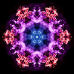 Flowers bloom in water. Meditative image created through photographs of ink in water digitally manipulated.